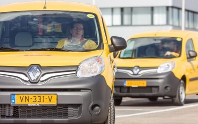De vloot Renault bestelwagens van DHL Parcel bestaat uit honderd Trafic- en vierhonderd Kangoo-modellen.